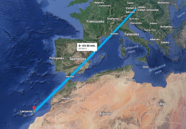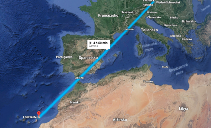 Najbližšie priame letecké spojenie na Lanzarote od novembra 2018 ponúka Ryanair s odletom z Viedne. Let trvá 4 a pol až 5 hodín.
